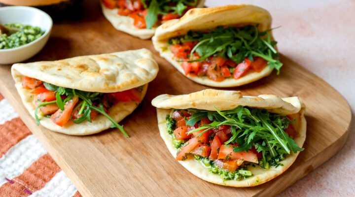 - Bak de flatbreads circa 5 minuten in de oven totdat de kaas gesmolten is.