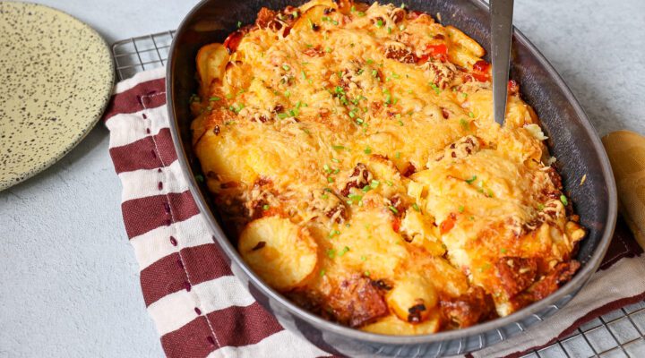 Het gerecht was heerlijk! Ik heb hem iets aangepast, aardappelpuree gebruikt ipv de schijfjes en zakje saus van Maggie gebruikt (ham-kaas saus) echt smullen en doorgegeven aan mijn ouders! Nog lekker een portie over voor in de vriezer ????